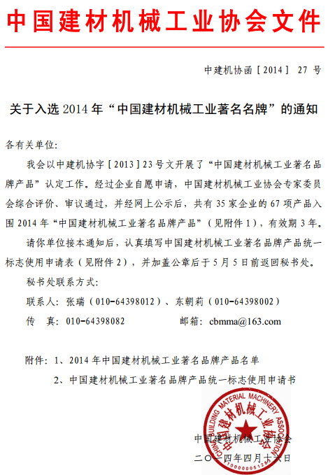 江蘇鵬飛集團榮獲中國建材機械工業著名商標