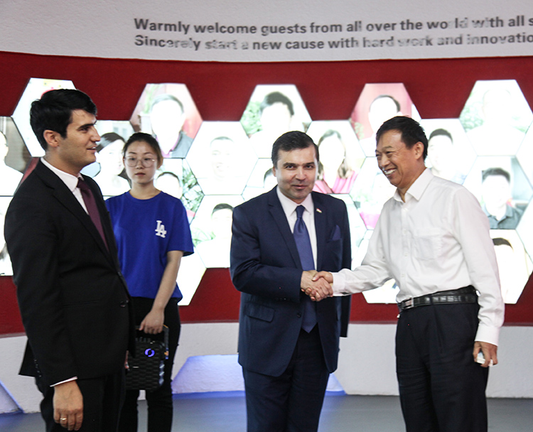 大使先生的來訪,受到鵬飛總裁王家安的熱烈歡迎,雙方一邊參觀,一邊交流。共同回顧了王家安先生本月中旬受邀出訪塔吉克斯坦3300t/d水泥生產線奠基儀式,與塔國總統莫馬利·拉赫蒙的接見過程。隨后大使先生詢問了鵬飛公司的發展歷程,公司產品所涉及的行業,水泥裝備對綠色環保、節能降耗等方面的使用情況。參觀結束后,大使先生首先感謝鵬飛的熱情接待,并對鵬飛的整體實力、產品性能給予了高度評價,望在今后的合作交流中進一步加深友誼,為下一步的合作夯實根基。