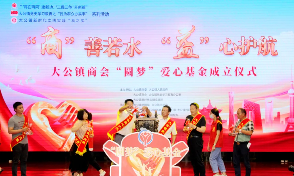 涓涓細(xì)流匯成大海,大公鎮(zhèn)商會(huì)會(huì)員企業(yè)家代表共同將愛心基金注入愛心池。緩緩騰起的煙霧,象征著企業(yè)蒸蒸日上的業(yè)績,更象征著青少年們騰起而飛的夢想!