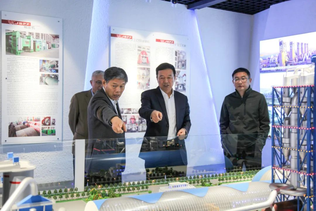 近日,江蘇省進出口商會會長笪家祥來鵬飛集團調研考察,海安市商務局黨組成員、副局長周先宇,公司董事長王家安、副總經理賁道林陪同參觀了鵬飛展示中心、黨建館。王家安詳細介紹了鵬飛的發展歷程、工業技術、創新成果及未來規劃,笪會長也對鵬飛集團的經營模式、科技創新、節能環保、綠色發展、信息化建設等情況進行了解。