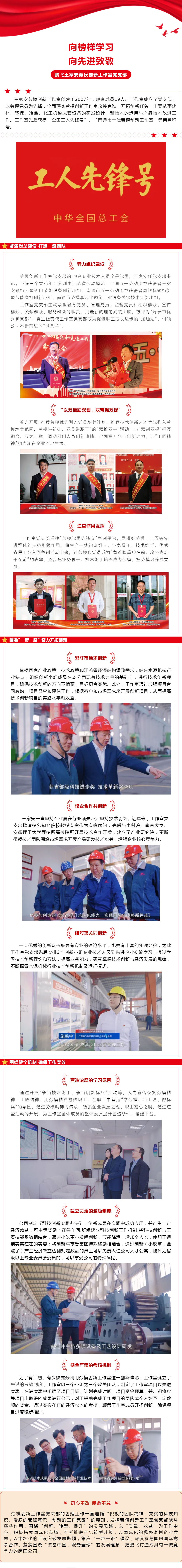 弘揚勞模精神 致敬榜樣力量--鵬飛王家安勞模創新工作室黨支部