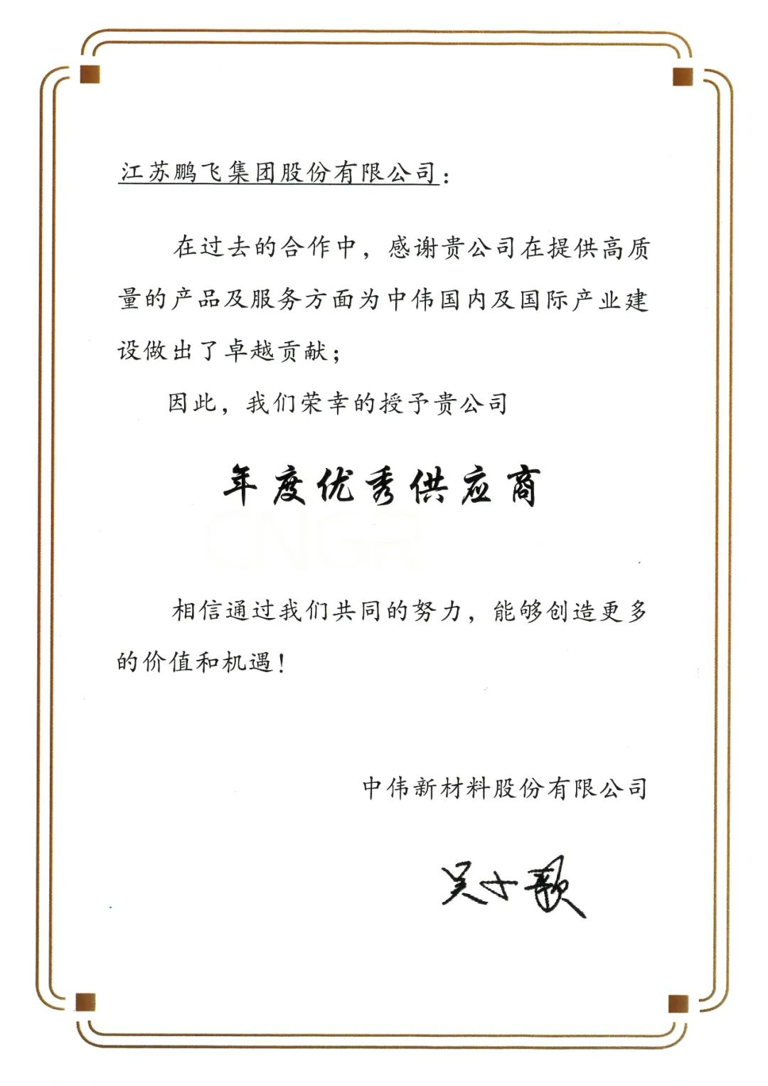 海外項目感謝信 | 年度優(yōu)秀供應(yīng)商