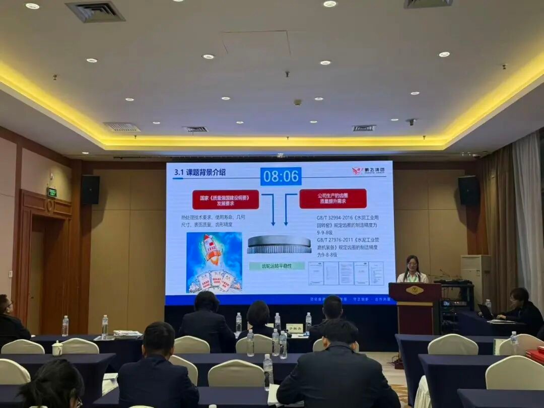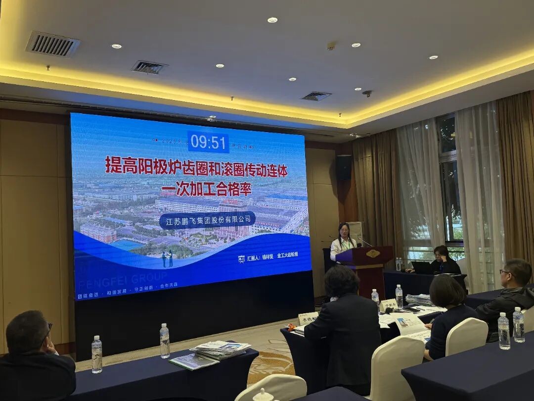 鵬飛金工QC小組發(fā)表成果《提高陽極爐齒圈和滾圈傳動連體一次加工合格率》。