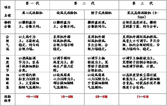 用于生料制備的組合式選粉機,集中了幾種選粉機的優點,使選粉機分選后的粗粉中,細粉含量大為減少。使系統循環負荷率降低,球磨機的粉磨效率得到相應提高。在選粉過程中,可以通入低于300℃的熱風,邊分級、邊烘干。在新型干法水泥生產線得到了廣泛的應用。它的主要特點是: