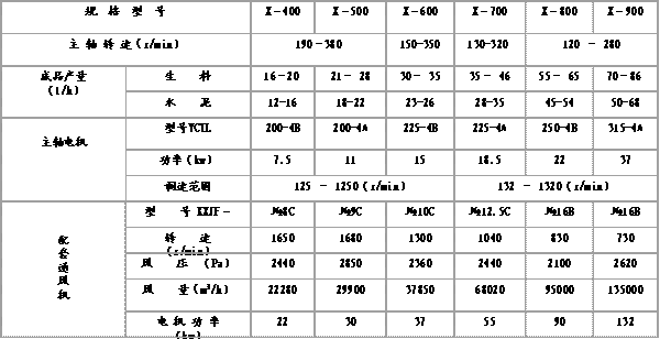 型號規格 處理能力(t/h) 生料產量(t/h) 通風量(m3/h) 電機功率(kw)
