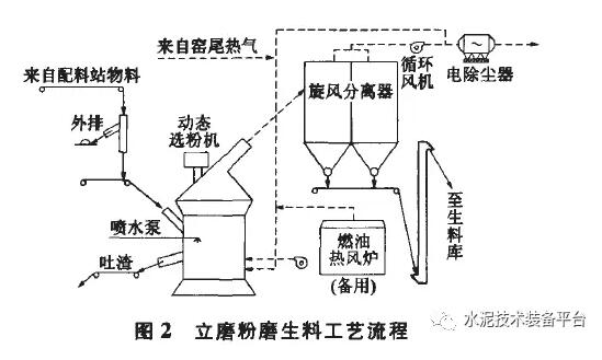 立磨終粉磨生料工藝流程見圖2.