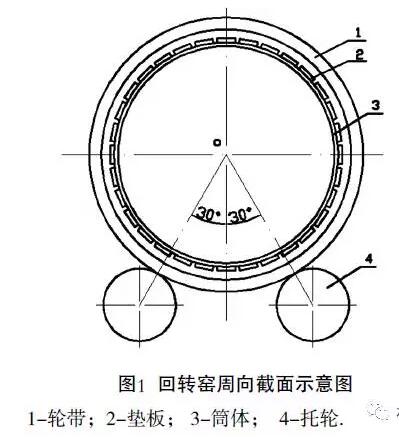 為解決回轉(zhuǎn)窯壓條頻繁掉落的故障,必須恢復(fù)輪帶內(nèi)表面與墊板外表面之間的間隙,使回轉(zhuǎn)窯在運(yùn)轉(zhuǎn)過(guò)程中輪帶剛好箍在筒體墊板上,降低墊板與輪帶的磨損,如直接更換輪帶與原墊板,不僅維修費(fèi)用高,而且工程量大。公司采取增加墊板的厚度和使用輪帶專用耐高溫固體潤(rùn)滑劑以予解決。