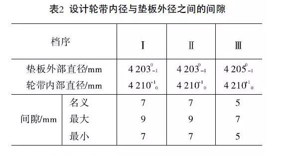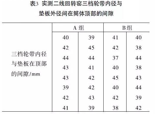 我們對(duì)2線三檔輪帶內(nèi)徑與墊板外徑在筒體頂部的間隙進(jìn)行測(cè)量,測(cè)量數(shù)據(jù)見(jiàn)表3