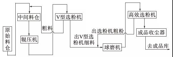 (2)將分料閥閥桿調(diào)至2格,出V型選粉機微粉約有80%入磨機,簡稱為試驗2;